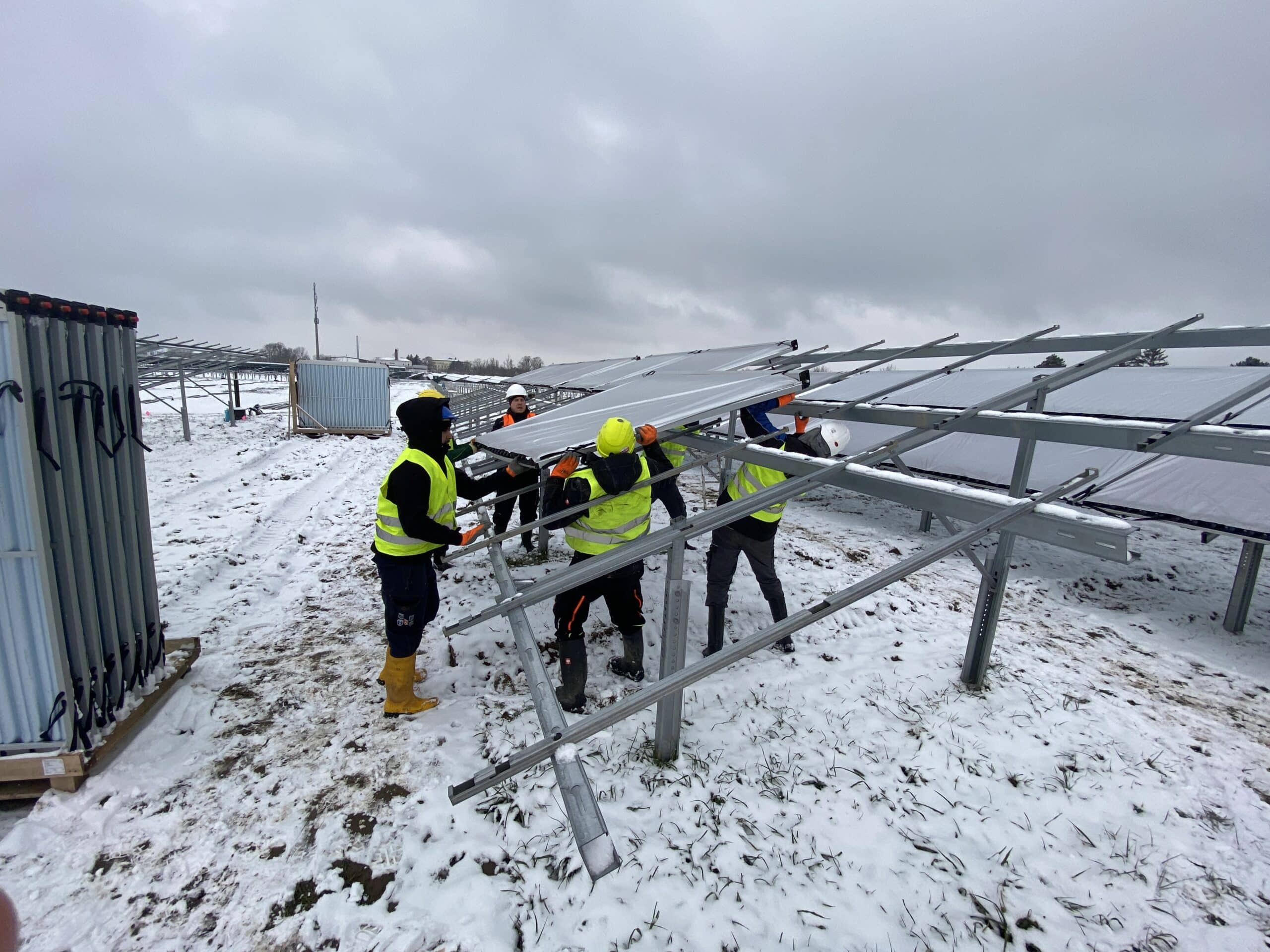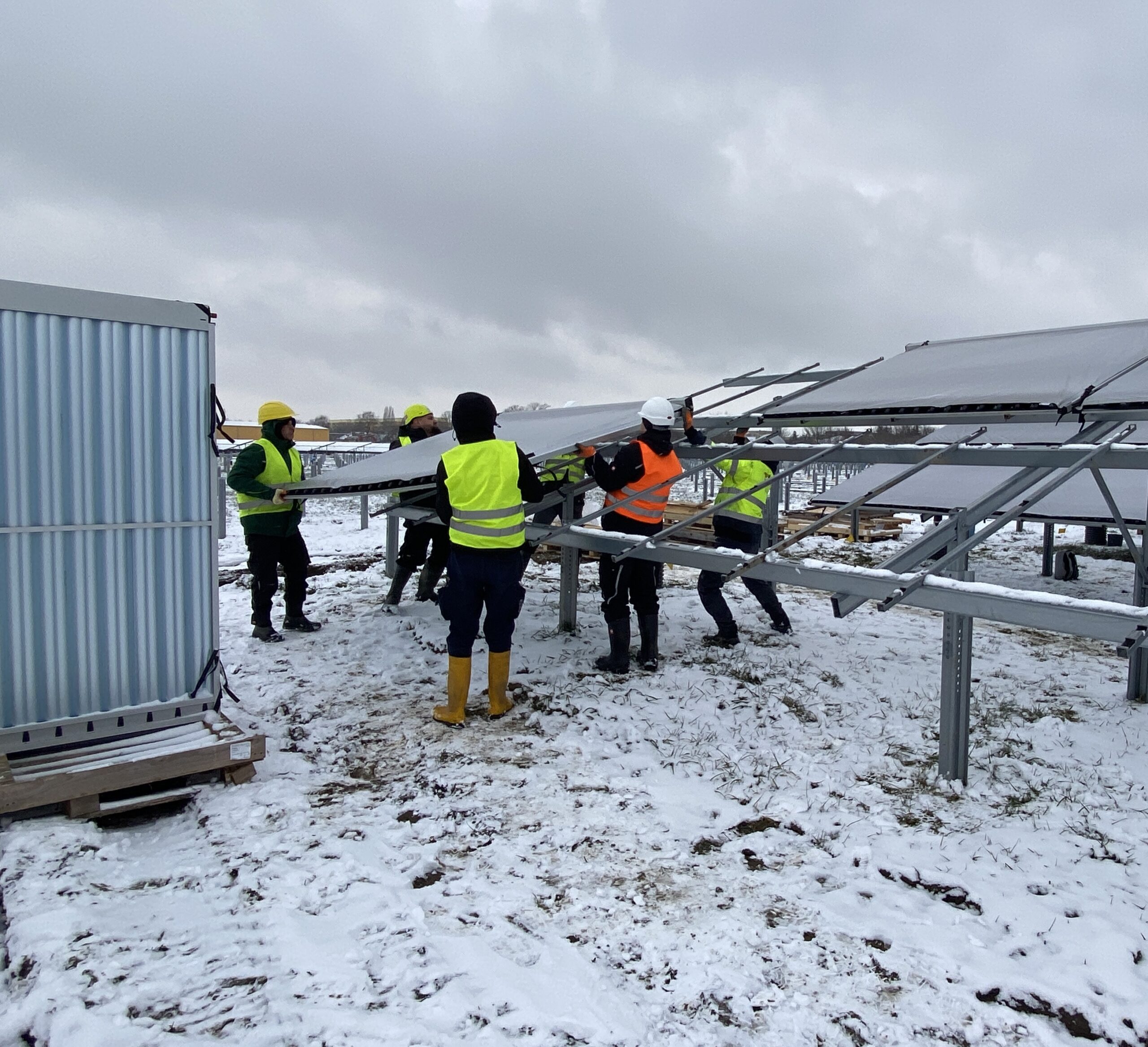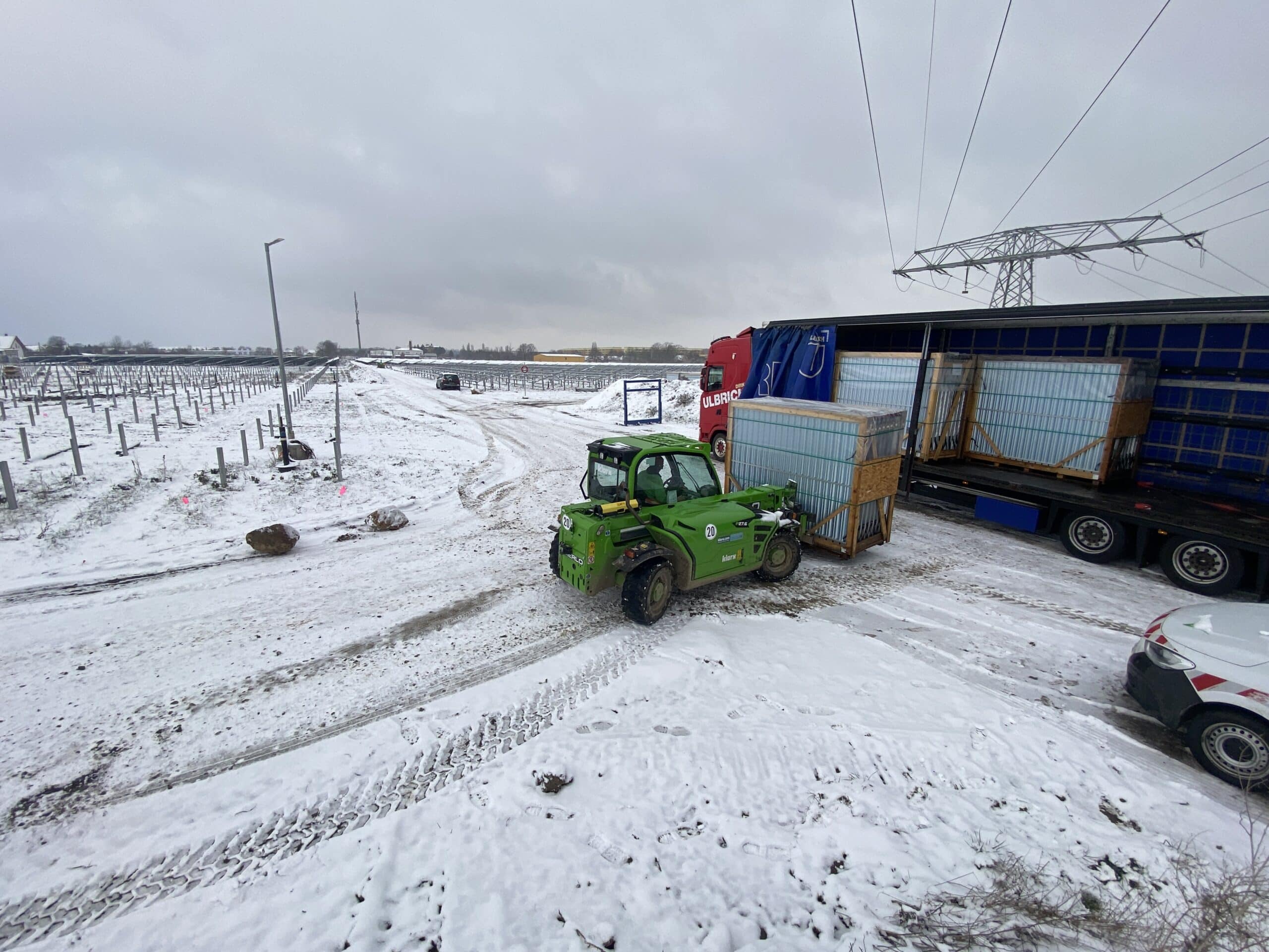 Die Baustelle der größten Solarthermie-Anlage Deutschlands in Leipzig zeigt sich derzeit in winterlicher Kulisse. Doch trotz Schnee und Kälte laufen die Bauarbeiten unvermindert weiter – und das nach Plan.